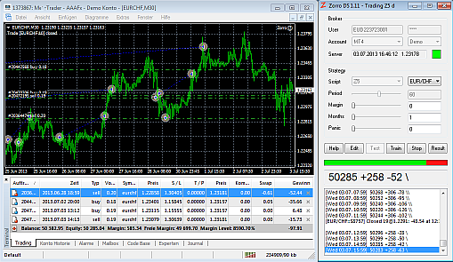 the terminal through File / Open an Account. If the account number and type are correct, clicking [Trade] will now attach Zorro to