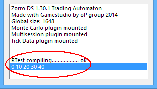 - Start Zorro and select the script RTest. Click [Test] for running RTest. If everything went well, you should see