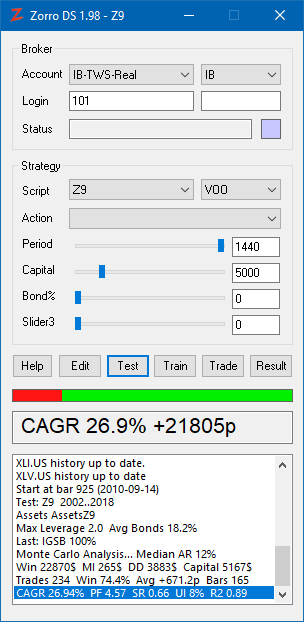 the strategy and click [Trade]. If you don't own Zorro S, withdraw your profits